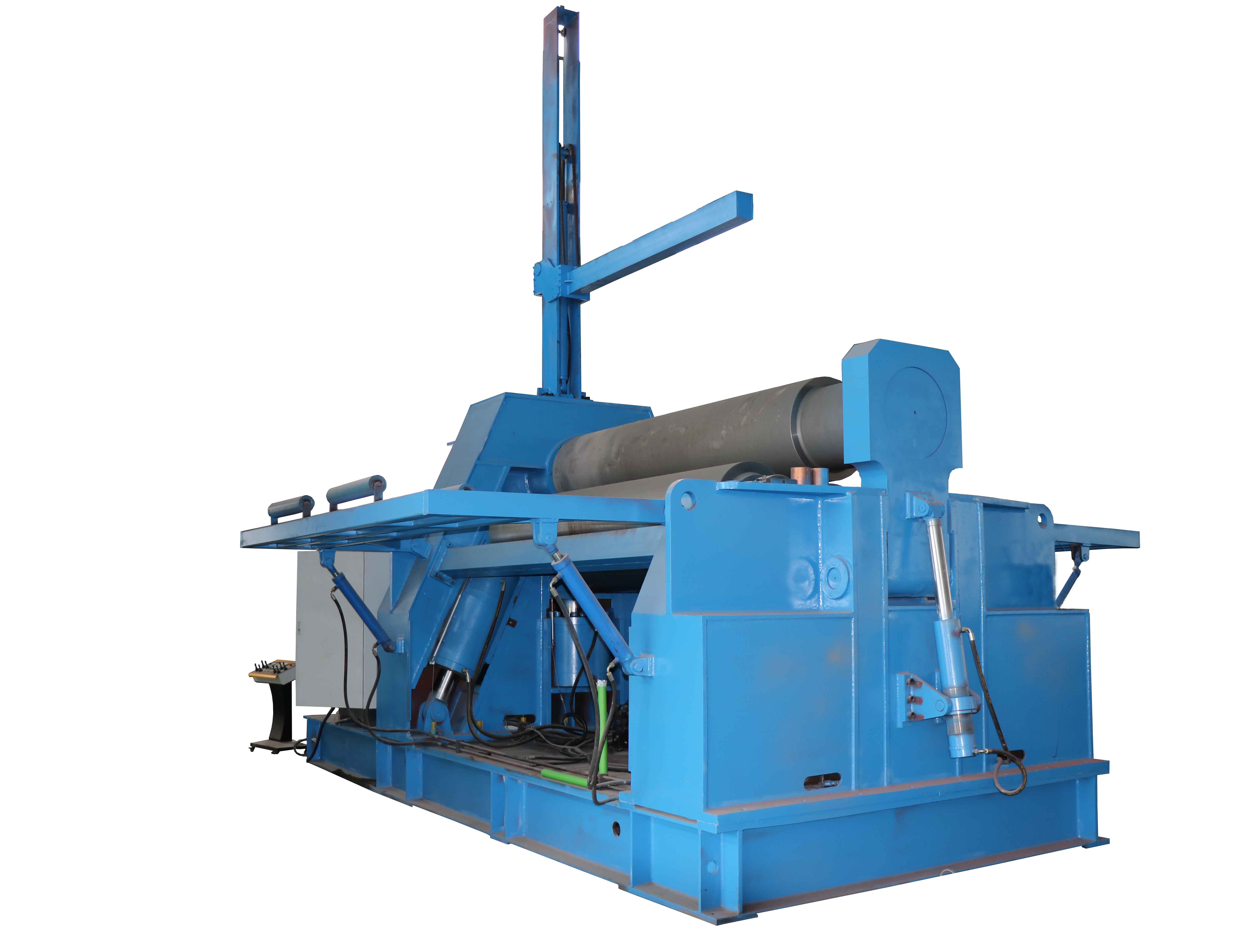 卷板機的兩下輥為主動輥,上輥為從動輥。四輥卷板機廣泛使用于造船、鍋爐、航空、水電、化工、金屬結構及機械制造行業。